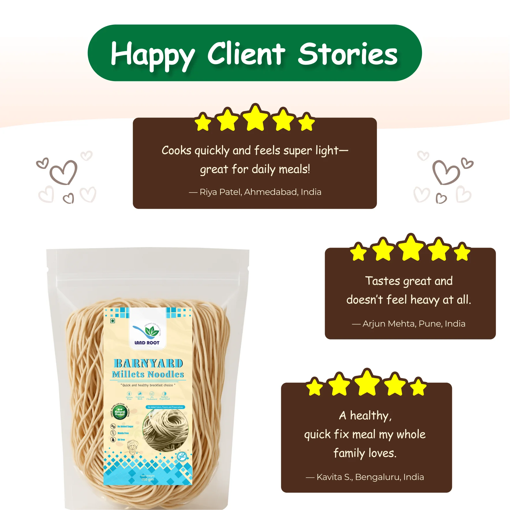 Low-calorie, high-fiber noodles made with barnyard millet for clean eating.