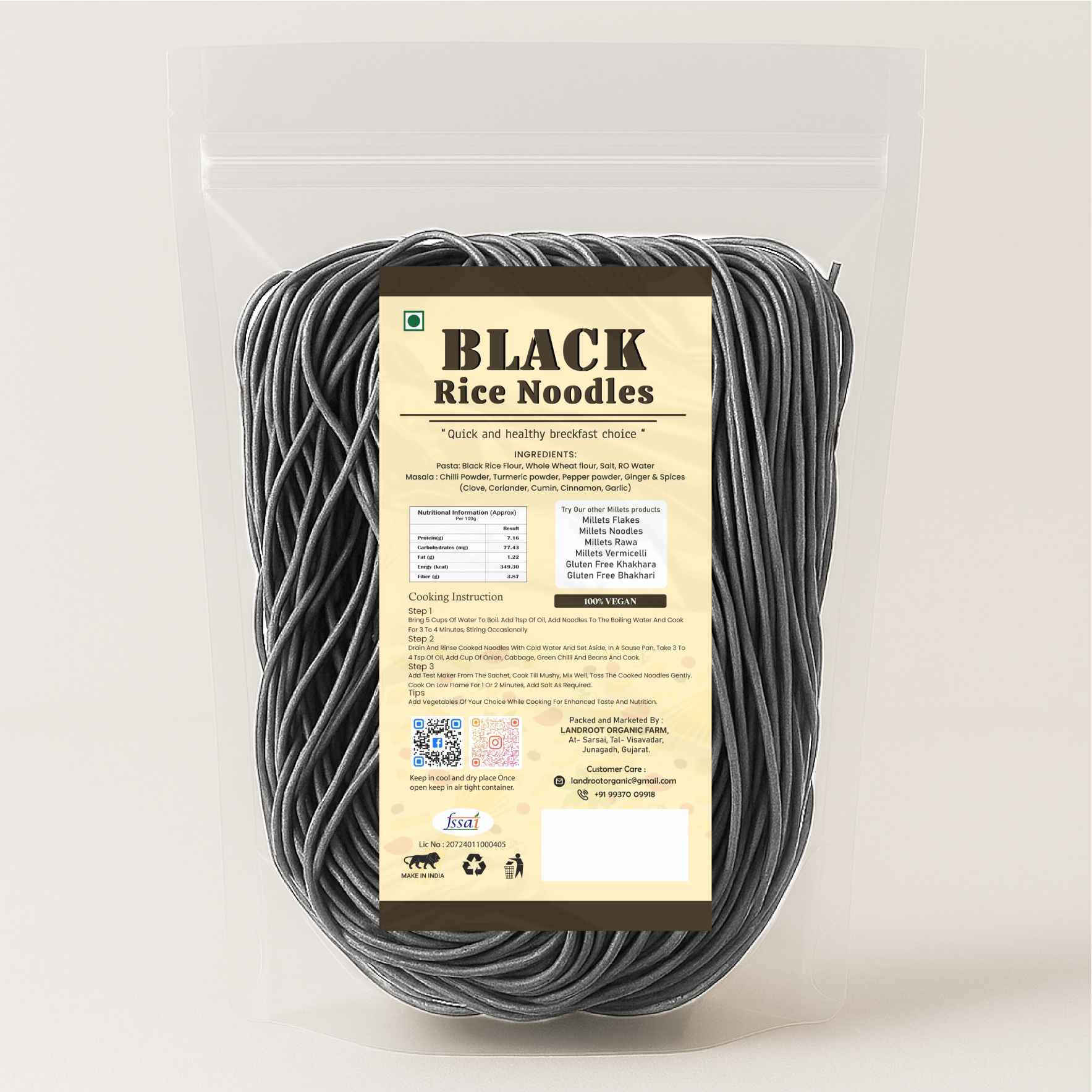 Exotic black rice noodles loaded with natural nutrients and deep purple color.