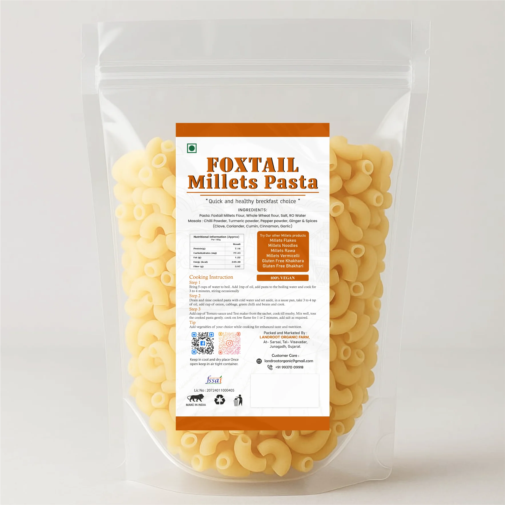 Fuel your day with Foxtail Millet Pasta, packed with iron, fiber, and authentic flavor.