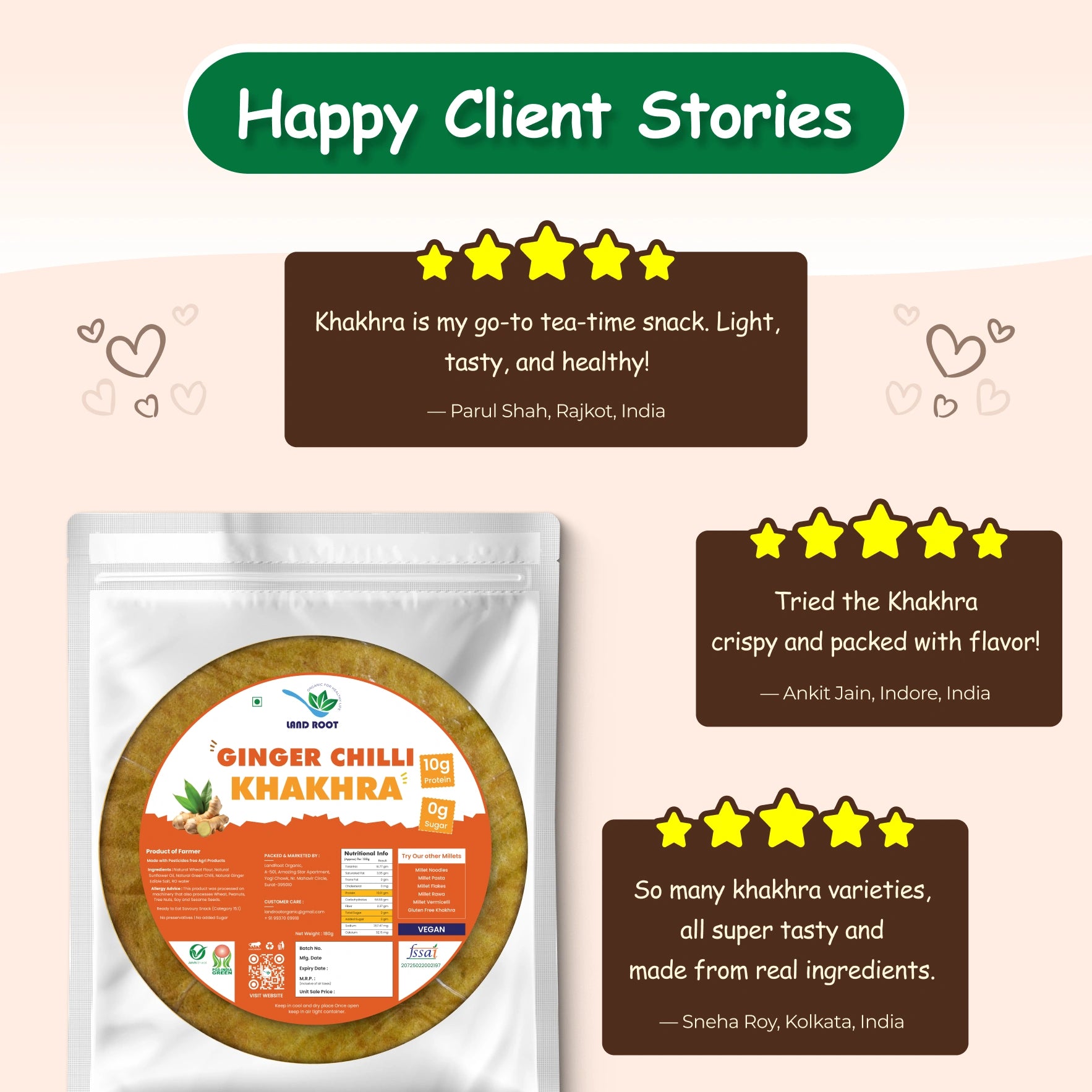 Spice up your snack time with Ginger Chilli Khakhra – a bold mix of zesty ginger and green chilli blended into every crispy bite. Naturally flavorful and farm-fresh.
