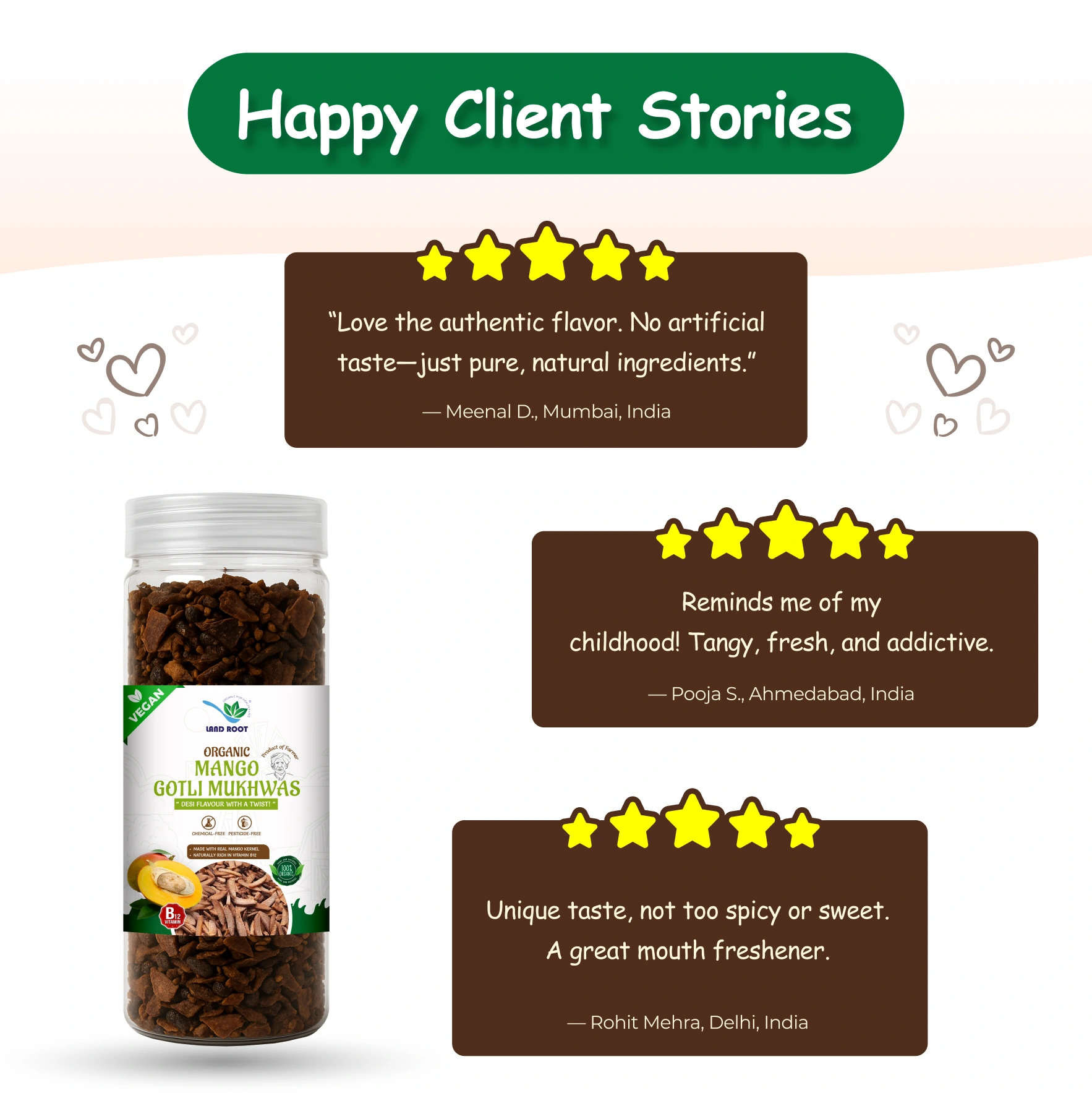 A tangy, digestive mouth freshener made from sun-dried mango seeds, blended with natural herbs and spices. Perfect for post-meal refreshment and gut health.