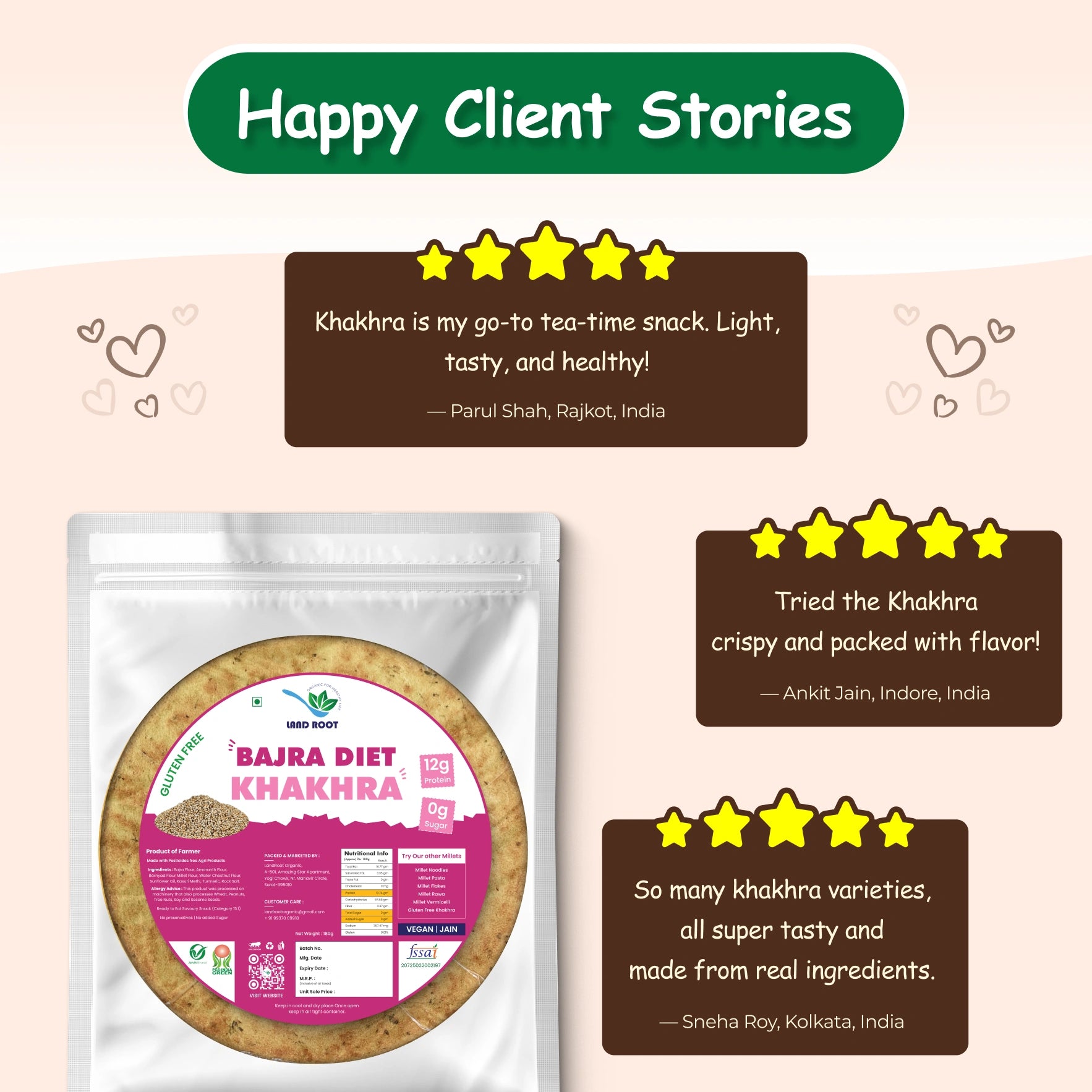 A power-packed combo of bajra (pearl millet) and methi, this khakhra is rich in fiber, iron, and rustic taste. Great for digestion and heart health.