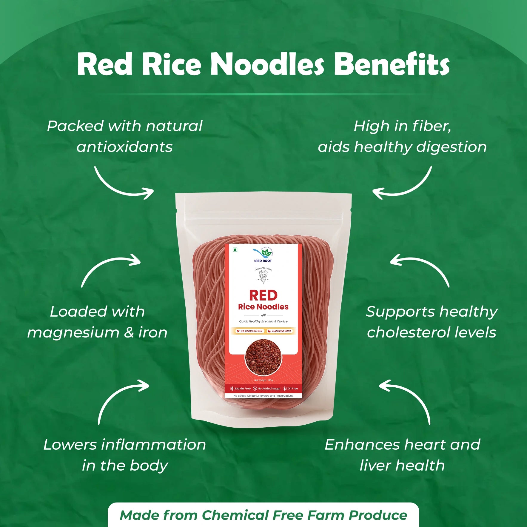 Antioxidant-rich red rice noodles with a bold flavor and hearty texture.