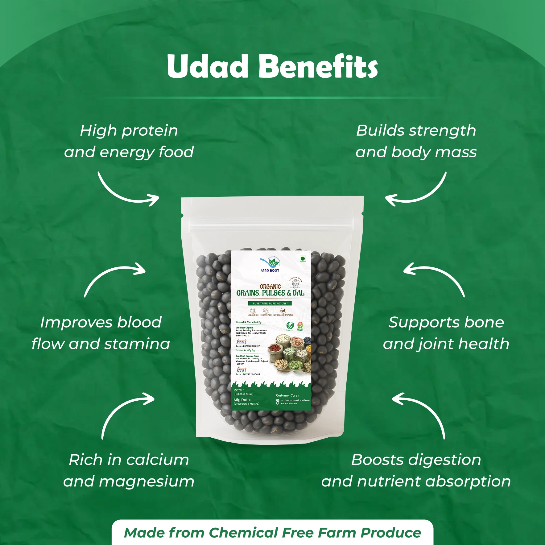 Organic whole Udad with skin, ideal for traditional recipes and high in plant-based protein.